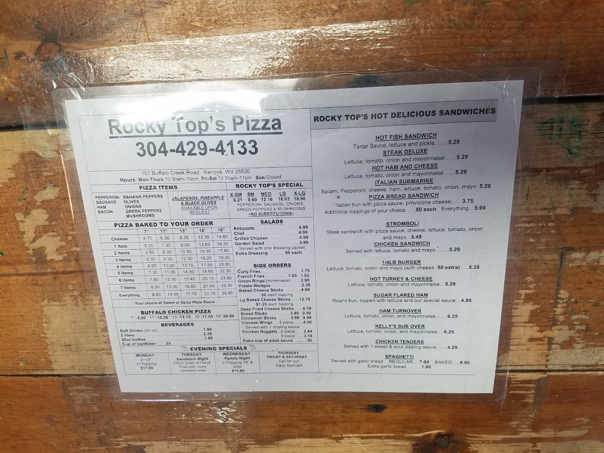 Welcome to Rocky Tops Pizza! Nestled in the heart of Huntington, West Virginia, at 101 Buffalo Creek Rd, Rocky Tops Pizza isn't merely a restaurant; it's a local treasure that serves up mouthwatering dishes with a flair for comfort and nostalgia. This establishment is a haven for pizza lovers and food enthusiasts alike.